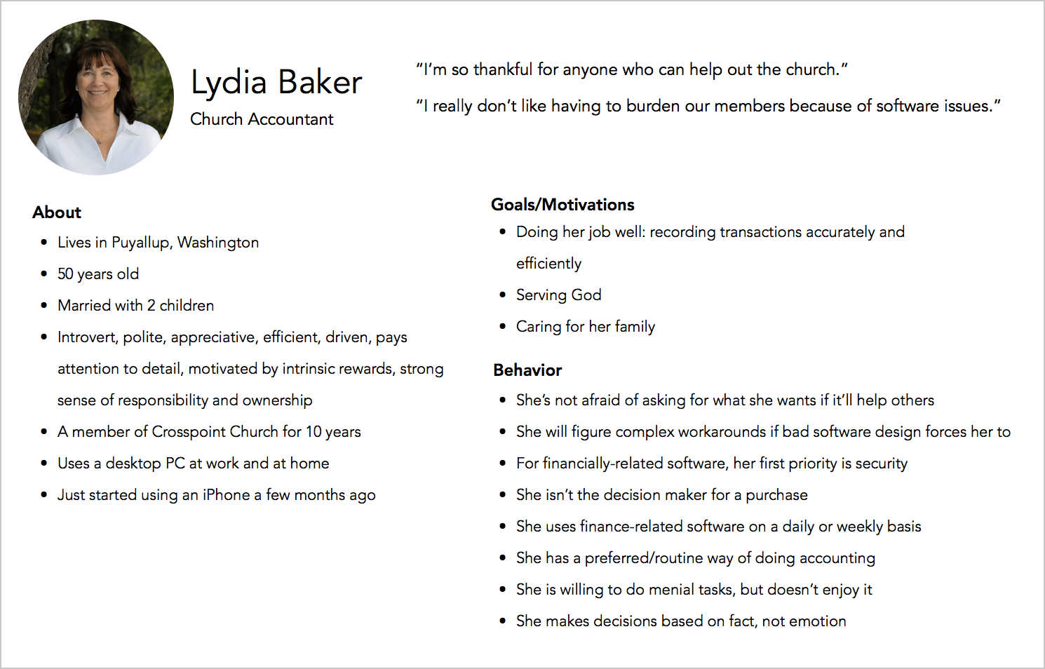 Persona for a church accountant